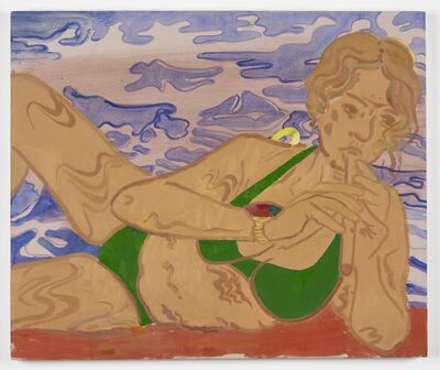 Opening 28 March 2026, Milly Thompson's painting drew inspiration from a wide range of influences, including Francis Picabia, Shirley Valentine, Jean Rhys, Japanese woodcuts, and even emojis. This diverse array of sources helps establish a relaxed, indulgent visual style that portrays everything from cellulite and sunbathing to lobster with sorbet.