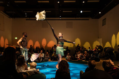 A groovy, gold trike, a disco on wheels bringing joy to your day, inviting audiences of all ages to join in, dance, and express themselves. Featuring one dancer, Wheelie Proud is an outdoor interactive promenade piece by Curious Arts, a leading LGBTQIA+ arts organisation based in the North East of England.